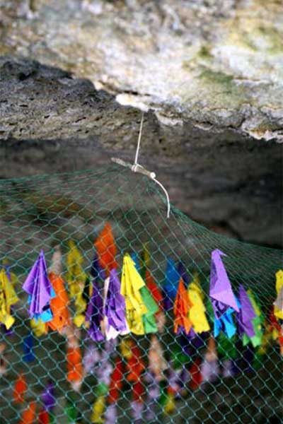 Installation dans la grotte du parc du château de Lauris, 2007 |