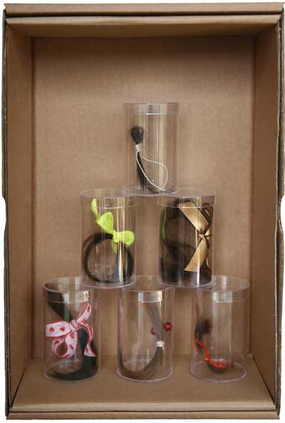 Boites avec cheveux et rubans