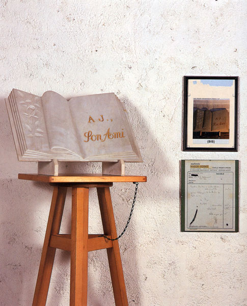 Un livre de marbre sur son support, 37 x 23 x 50 cm