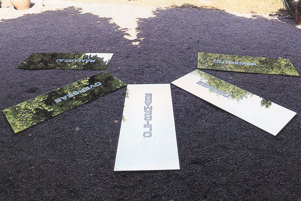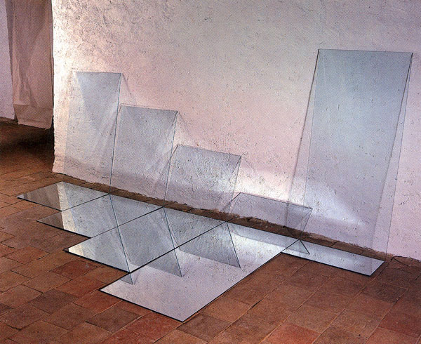 Cinq miroirs gravés, 180 x 70 x 1,5 cm