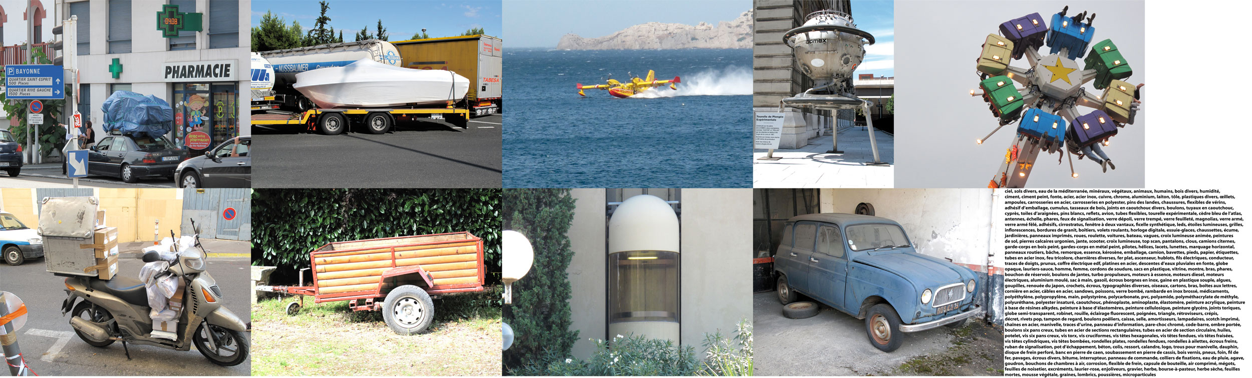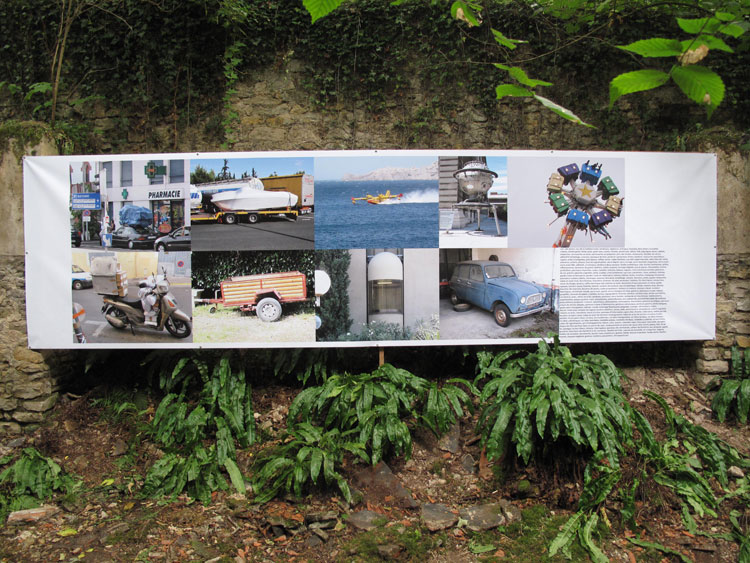 De bric et de broc, malgré tout 2017 Impression numérique sur bâche, 157 x 578 cm Vues de l'exposition Pluriel, sur une proposition de Véronique Verstraete Chabrolles-Site Patrimonial industriel de la Chaux, Beffes, Festival Format Raisins, 2017