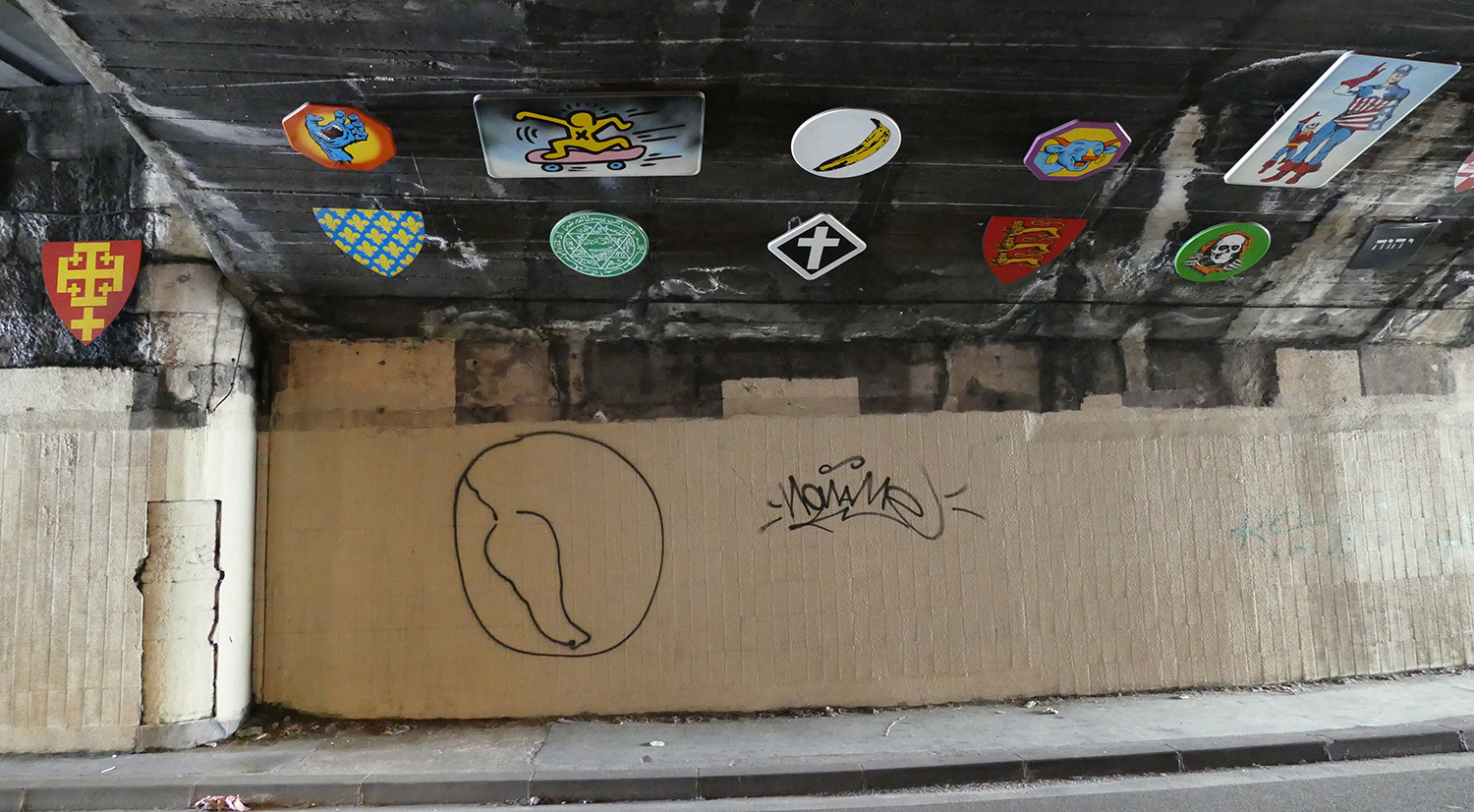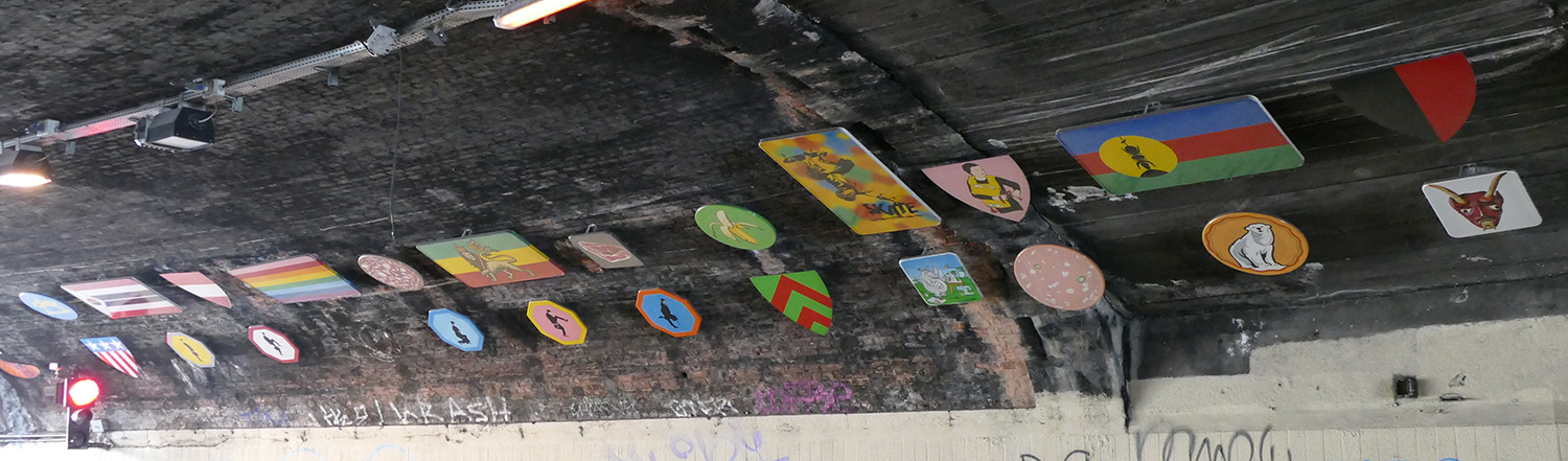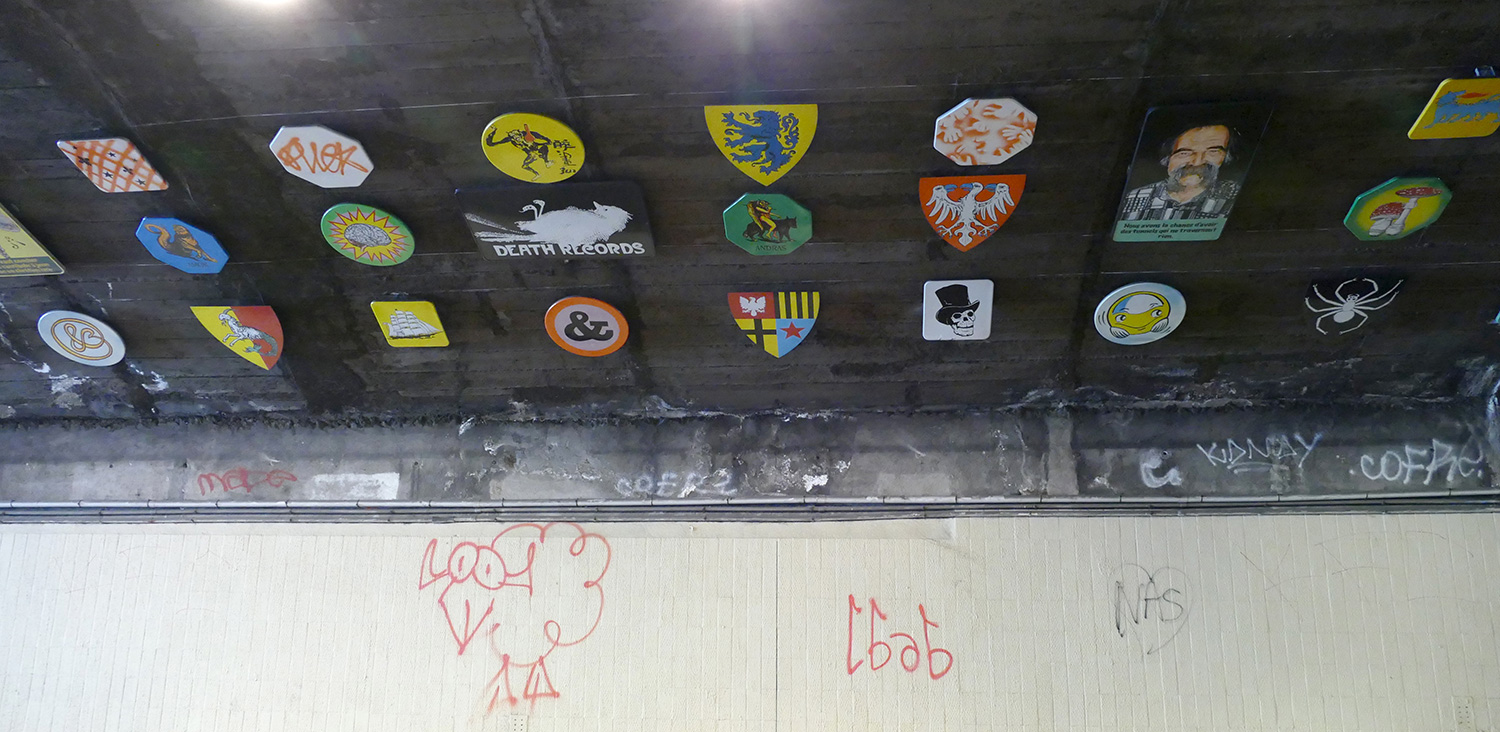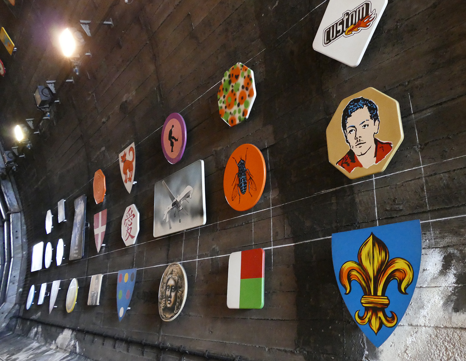 À partir de son travail iconographique qui mixe très souvent signes, symboles, images indexées à l'histoire aussi bien que ceux de la bande dessinée, le graffiti, tatouages, logos tribaux, l'artiste Frédéric Clavère propose d'installer un ensemble de panneaux peints, à la manière d'une caverne de hiéroglyphes d'un genre nouveau. Une mosaïque de pictogrammes issus de son imaginaire et de celui des habitants ou usagers du quartier.