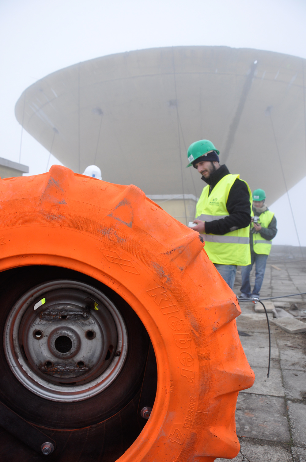 L’équipe Crash Box est arrivée sur le site de la Tour Plein Ciel la veille de son foudroyage. La visite de chantier a été consacrée à la vérification des emplacements des crash box, le placement des noyaux en mousse à l’intérieur des boîtes blindées destinées à recevoir les caméras et l’ajustement des cadrages. Au moment de quitter le chantier, la tour avait complètement disparue, dissimulée sous une épaisse brume, comme si seule la vue intérieure de la démolition s’apprêtait à subsister pour le lendemain...