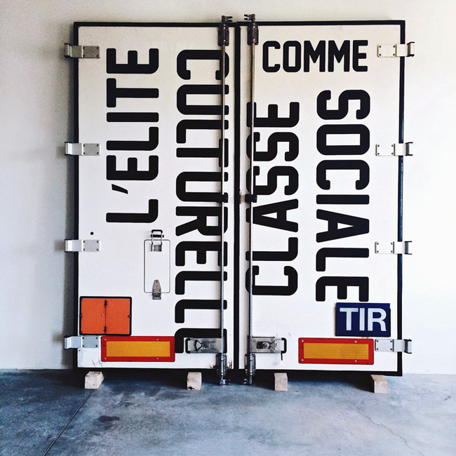 Deux portes arrières de semi-remorques, adhésifs noirs