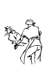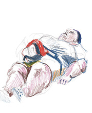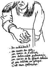 Aux urgences, endolories de toutes les manières, on veut des résultats, des images. En ce milieu, infiltrée entre la douleur du patient et le médical, je prends note de l’importante parole échangée et gure ce singulier vis-à-vis humain.
