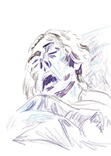 « L’anesthésiste parle au patient juste avant de l’endormir. Sa voix est parfois la dernière entendue. Faire un portrait en réanimation, c’est dessiner avec cette idée qu’il est possible que ce soit le dernier.