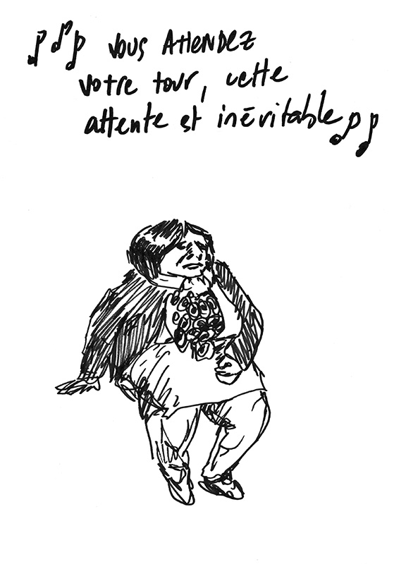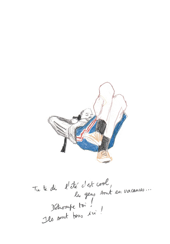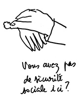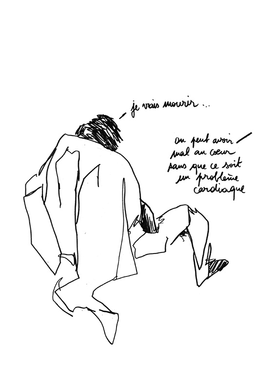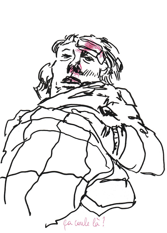 À n’importe quelle heure et pour parfois pas grand chose, ils arrivent dans ce service déjà engorgé. Je me demandais bien ce qui pouvait pousser quelqu’un à venir à 3h du matin pour un mal de ventre. Souvent, ils demandaient un Irm ou un scanner. Je dessinais et me rendais bien compte de la force du dessin. L’image en elle-même importait peu, ou plutôt était comme un effet secondaire. L’important c’est d’abord d’être représenté. Ces pauvres qui défilent, ceux que les médias, les politiques ou les bailleurs sociaux ont abandonné, c’est bien une image qu’ils attendent. Et ils resteront là toute la nuit s’il le faut, pour le temps d’un examen, accéder à un peu d’égalité face à la représentation.»