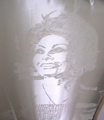 Usure sur satin, 106,5 x 70 cm