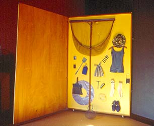 Poster de la tenue portée, collé sur sur le couvercle de la boîte en bois