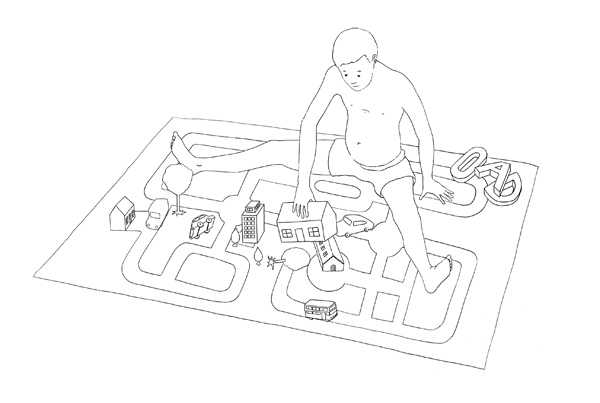 Dessin au feutre sur le mur, 12 x 4 m,