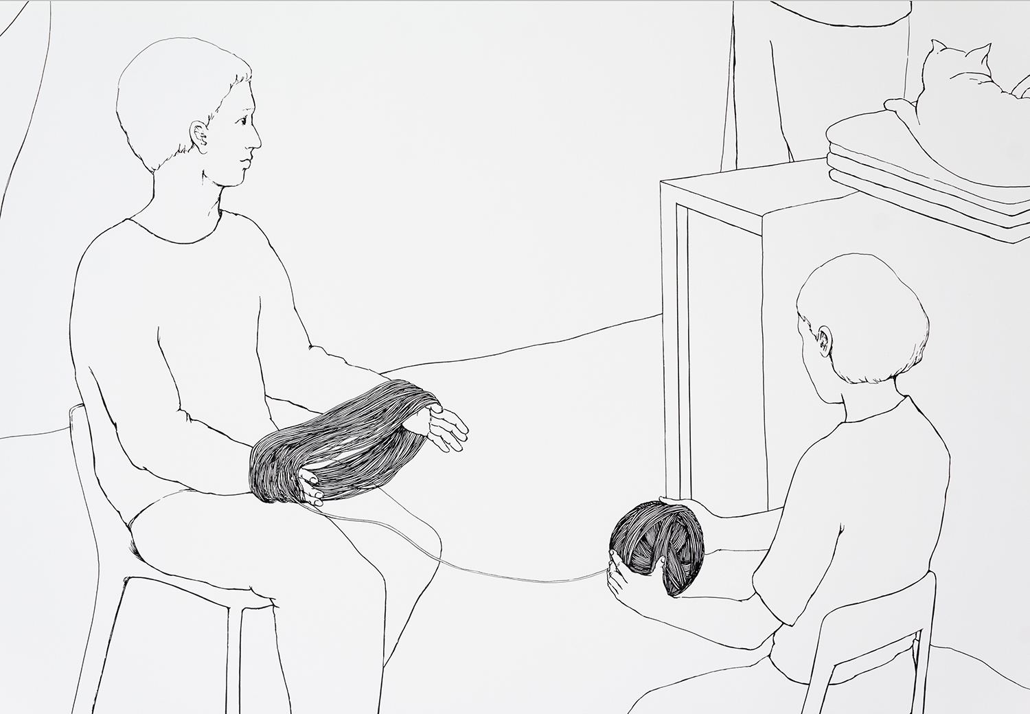 Transmettre, tisser, joindre, 2020 Dessin mural, 270 x 360 cm Vue de l’exposition Nous habitons ici ensemble, Musée d'art contemporain, Montélimar, 2020 Voir des détails