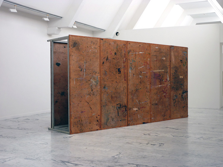 Acier, contreplaqué, traces d’usage, 90 x 200 x 500 cm
