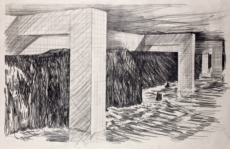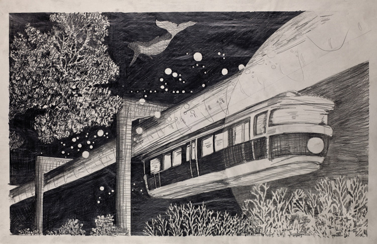 Crayon sur papier monté sur rodhoid électrostatique, 65 x 100 cm