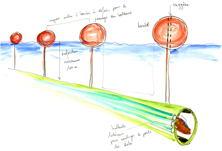 M.U. (Mediterranean Undersea) est un réseau de transport et de communication, un métro sub-aquatique qui relie physiquement comme symboliquement tous les pays de la Méditerranée. M.U. est un système de transport public, de transport ensemble. Ce n’est pas un bateau, encore moins un paquebot. C’est un réseau utopique, que l’on ne voit ni devine, que l’on ne peut vivre sans engagement.