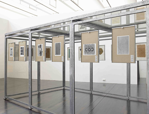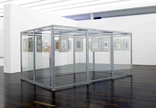 Verre et acier galvanisé, 20 dessins encadrés 216 x 470 x 280 cm