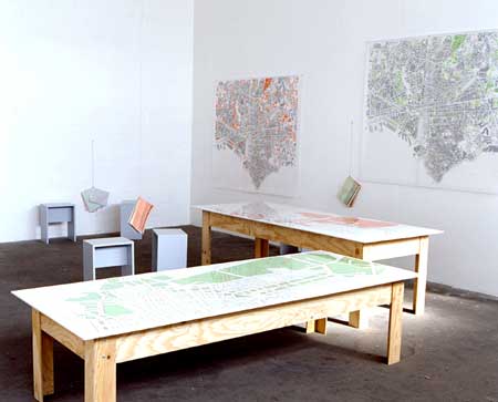 Linstallation Quatre façons de se rendre dun point à un autre explore les différentes manières de faire un même trajet dans une ville. Litinéraire est très banal et, cela a son importance, nexprime en soi aucune perspective.