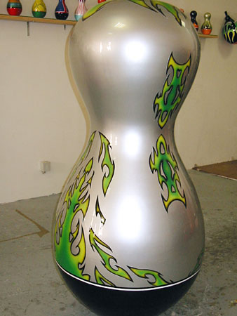 Résine polyester et peinture de carrosserie, 130 x 65 x 65 cm, pièce unique