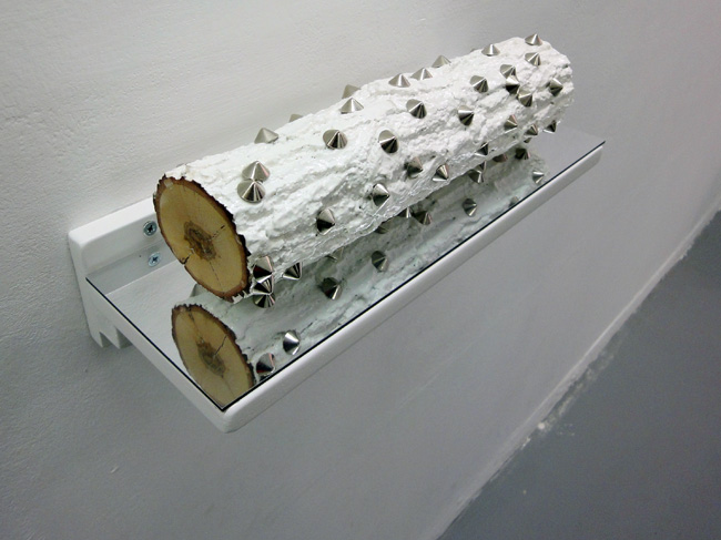 Bois, peinture, vernis, acier chromé, miroir, 25 x 60 x 20 cm