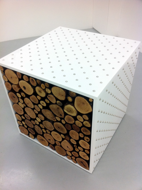 Bois, peinture, vernis, acier chromé, 80 x 80 x 80 cm