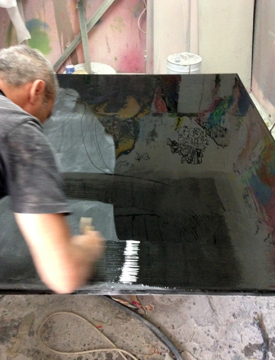 Peinture à l'huile sur toile, fibre de verre et résine polyester, 163 x 130 cm |